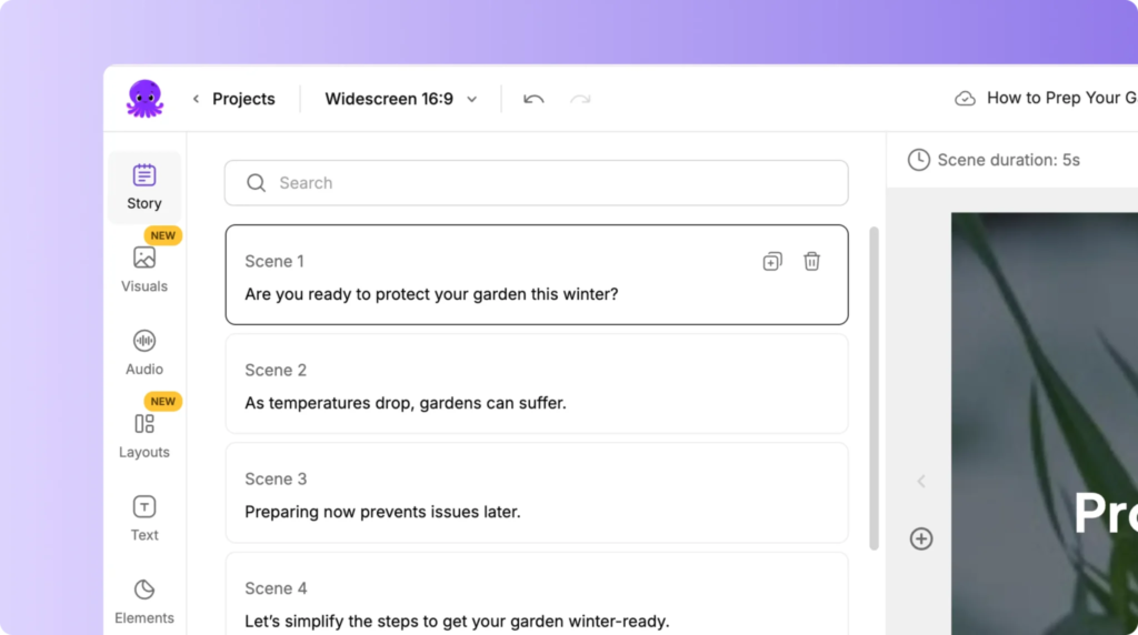 点击“应用语音和图片”,系统将使用人工智能生成的语音自动为您的脚本配音,并与您的视频场景完美同步。